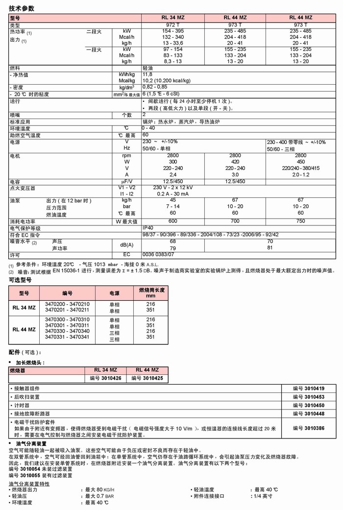 由于燃燒器的錯誤安裝及調試、非正常使用、未按產品所附技術手冊操作以及無操作資質人員操作所造成的任何人、畜及財產損失,制造商不承擔任何責任。