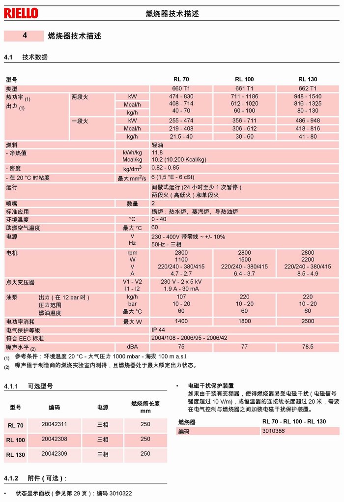 調節方式是“兩段火”;燃燒器裝有微電子控制盒,能提供燃燒器的運行狀態和故障反饋信息。