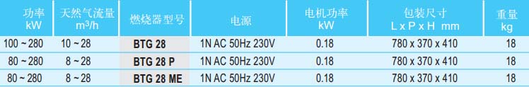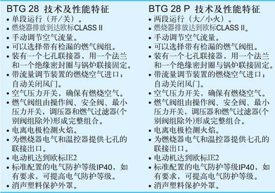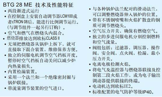 燃燼氣體在燃燒頭的再循環可以獲得很低污染排放,特別是氮氧化物的排放(Nox)(BTG 15 達到歐洲標準EN676, Class II,和BTG