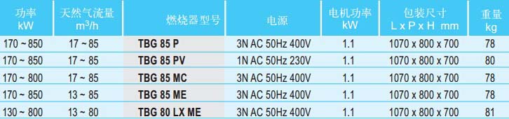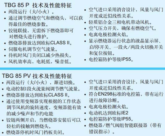 低NOx 和 CO 排放(class III),符合歐洲 EN676標準的燃氣燃燒器.
