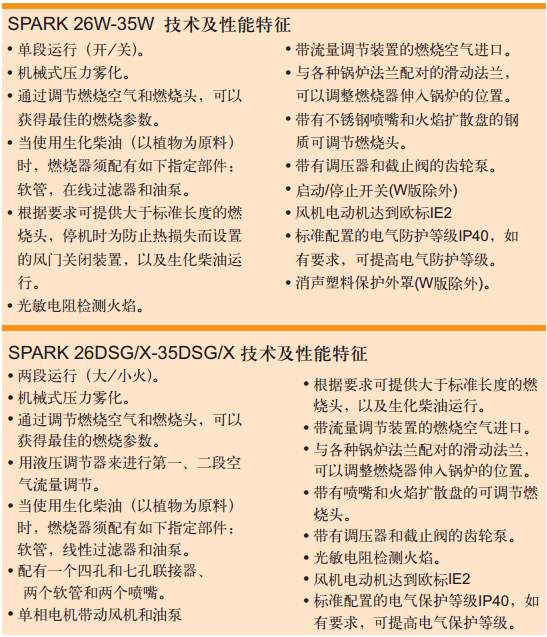 根據要求可提供大于標準長度的燃燒頭,停機時為防止熱損失而設置的風門關閉裝置,以及生化柴油運行。